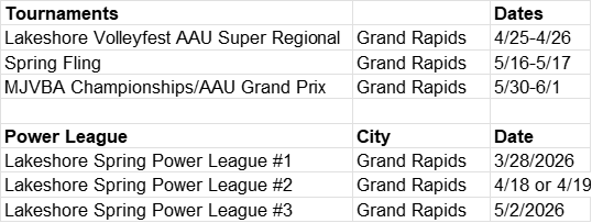 We are looking for girls ages 13 to 16 years old with previous volleyball experience. We are also looking for girls 10 to 12 years old to form a 12U team.